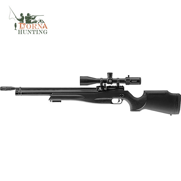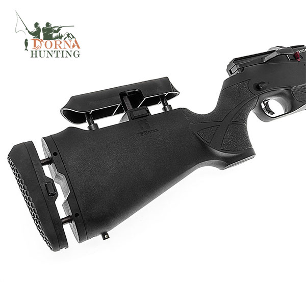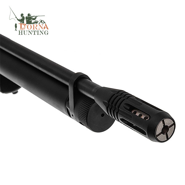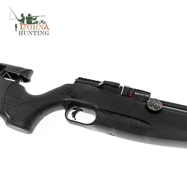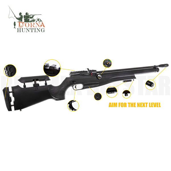 قنداق فایبر تقویتشده این مدل علاوه بر سبک بودن، مقاومت بالایی در برابر ضربه و شرایط جوی دارد. طراحی ارگونومیک و وجود بند شانهای حمل آن را آسان میکند. مکانیزم مسلحسازی اهرمی جانبی، ریلهای نصب دوربین پیکاتینی/11 میلیمتری و لوله رایفل فولادی با دقت بالا از ویژگیهای برجسته این سلاح هستند. همچنین وجود مانومتر تعبیهشده روی بدنه، کنترل فشار هوا را سادهتر کرده است.